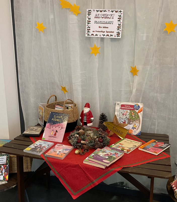 Wie jeden Advent haben wir viele Romane, Sachbücher, Kinderbücher, Hörbücher, Filme … für Sie im Vorraum unserer Bücherei ausgestellt.