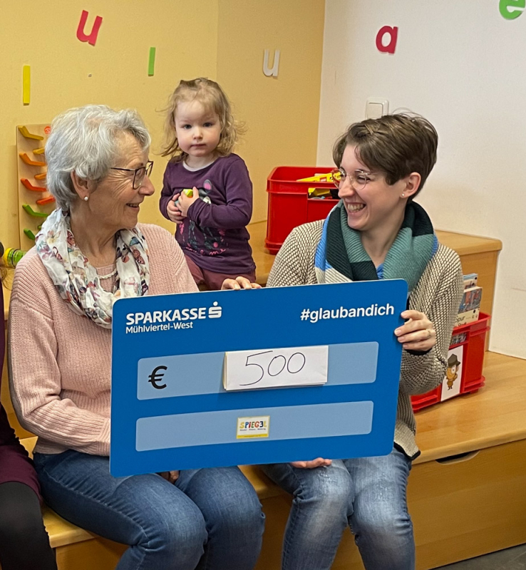 Unsere Arbeit mit den Kindern lohnt sich auf jeden Fall. Und nun wurde unsere Arbeit auch belohnt! Das Team der Spiegel-Spielgruppe unter der Leitung von Lisa Ammerstorfer überreichte uns einen Scheck im Wert von 500,00 Euro aus dem Erlös vom Kinderwarenbasar.