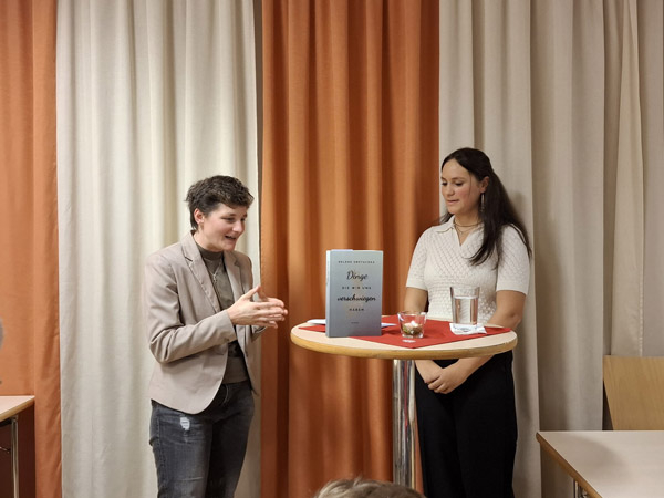 „Dinge, die wir uns verschwiegen haben“, so lautet der Titel des Buches. Eigene Erlebnisse, Ideen aus Büchern oder Filmen - was die Jungautorin in ihrem Erstlingsroman verpackte und wie sie an ihr Buchprojekt heranging, das erzählte sie bei der Buchpräsentation am 4. Dezember 2025. Denn von der Idee bis zum Konzept, dem Schreiben und Überarbeiten, Korrekturlesen und Finden eines Verlages ist es ein langer Weg. Helene las auch Passagen aus ihrem Buch vor, und machte damit die vielen Besucher neugierig, das Buch als Ganzes zu lesen.