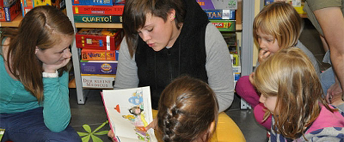 der öffentlichen Bücherei getroffen. Wir durften den Kindergartenkindern Bücher vorlesen.